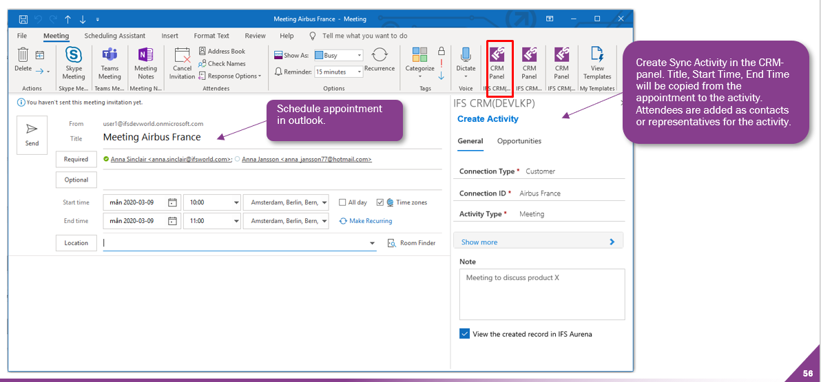 CRM Panel is an Outlook extension in Apps 10 – which when installed allows your sales teams to work in Outlook as normal and interact with your CRM system, including the mobile app . A win-win scenario for teams using both Outlook and IFS.